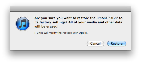 Step#4: iTunes will prompt asking you’re sure you want to restore your iOS device to factory settings. Click the Restore button.