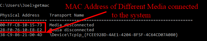You may see more than one MAC address depending on the number of network-related adapters connected on your system. For instance, Wi-Fi and Ethernet connections may have separate MAC addresses.