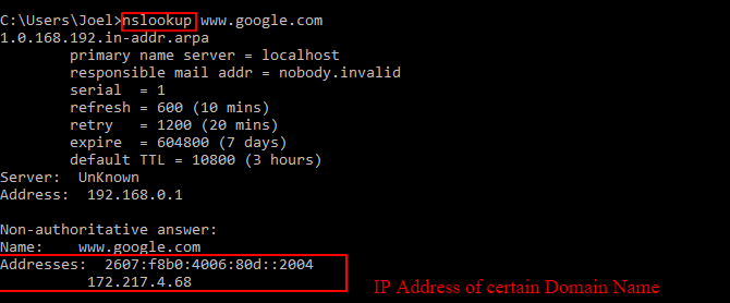 NOTE: Certain domain names aren’t tangled to a dedicated IP address, which implies that you may get different IP addresses every time you run the command. This is quite normal for a big websites because they spread their workload across different machines.