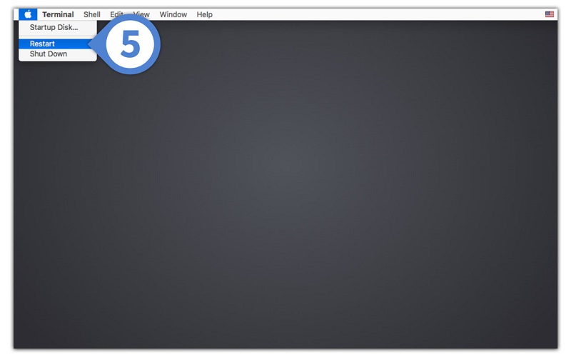 • Once disabled System Integrity Protection, restart your Mac system through the Apple menu.