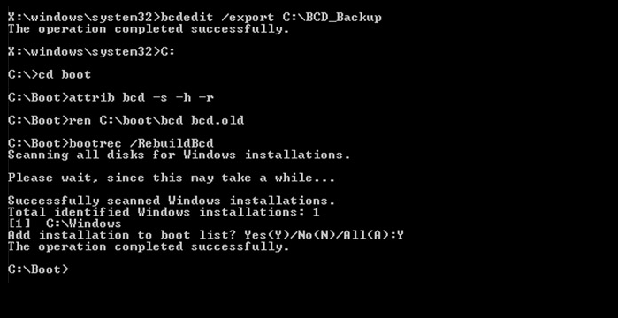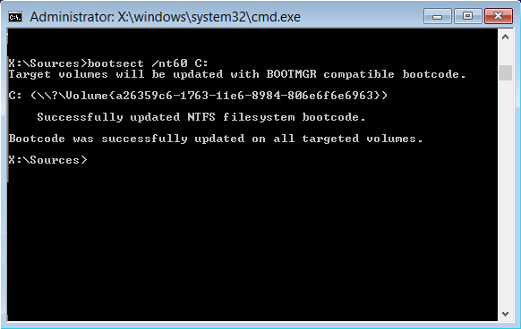 3. Type the command bootsect /nt60 C: and hit Enter.