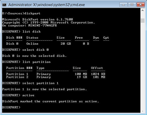 Note: Mark the System Reserved Partition (generally 100mb) active and if you don’t have a System Reserved Partition, then mark C: Drive as the active partition.