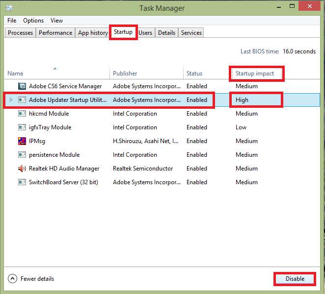 iii. Windows tells you about the application that slows down your PC’s startup process the most by showing their Startup impact. Disable the program whose Startup impact is shown as High to speed up the login process.