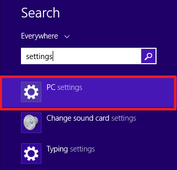 i. Press Windows + S and in the search bar, type Settings and click on PC settings.