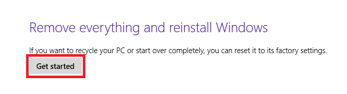 iv. To reinstall Windows, click Get started under Remove everything and reinstall Windows.