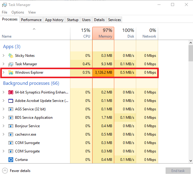 Some processes might be using 99% of your CPU or an application might be using the memory or disk a lot due to memory leak, cause other applications and your PC to work slower.