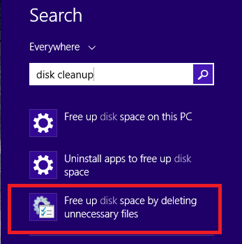 i. Press Windows + S and in the search bar, type Disk Cleanup and click on Free up disk space by deleting unnecessary files.