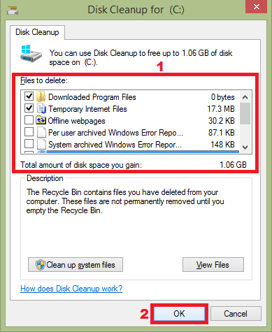 To make some space on your hard drive, use Windows Disk Cleanup tool.