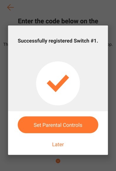 11. Now tap Enter Registration Code and enter the PIN code you got on Nintendo Switch Parental Controls app. Wait till they link together.