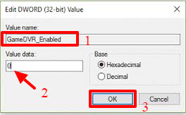 Step#3: Right-click on GameDVR_Enabled and choose “Modify” and then set the Value to 0.